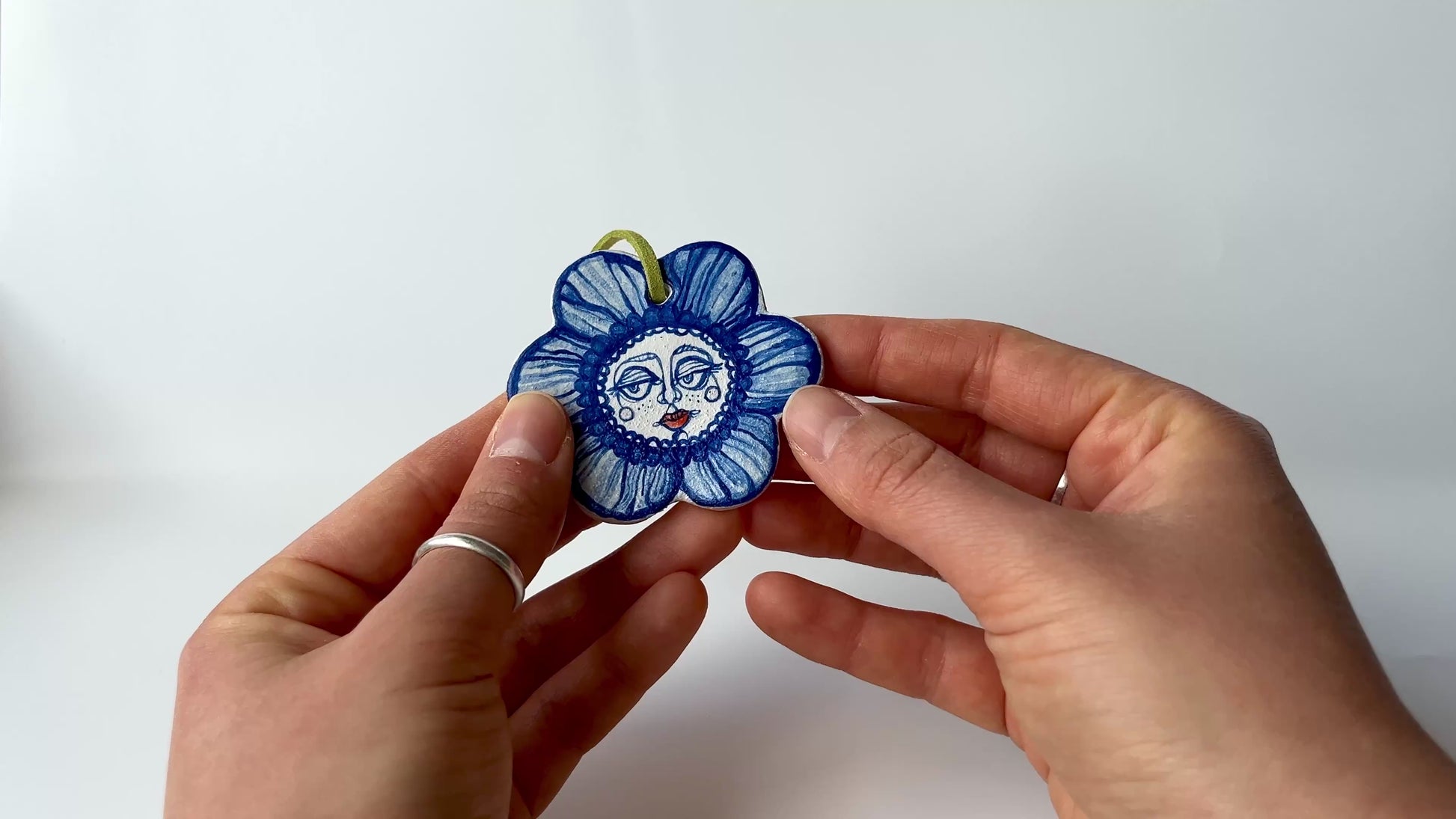 Shaped like a delicate flower, this piece features a playful flower character at its centre, blending nature with a touch of personality. Perfect for adding a unique and artistic element to your space, this hanging decoration brings a touch of warmth and character to everyday surroundings. Whether displayed on a wall, a door handle, or nestled into a gallery arrangement, it’s a small yet meaningful piece that makes any corner of your home feel a little more special.
