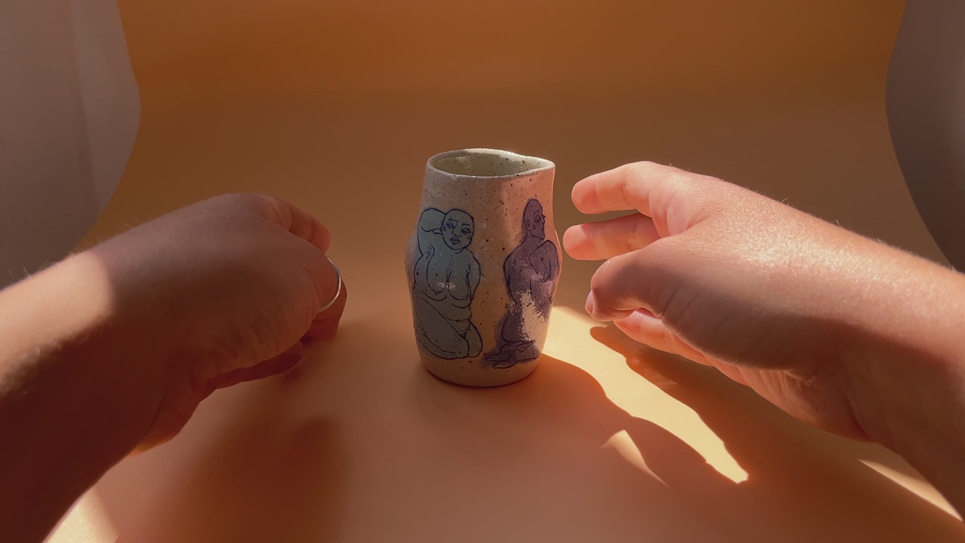 Wheel-thrown from speckled stoneware clay, this jug is as practical as it is meaningful. Its unglazed background reveals the natural warmth of the clay, grounding it in earthy simplicity. Hand-painted transgender characters bring the surface to life- each one unique in form, identity, and expression. Together, they tell a story of trans joy, pride, and the limitless ways we exist and take up space.