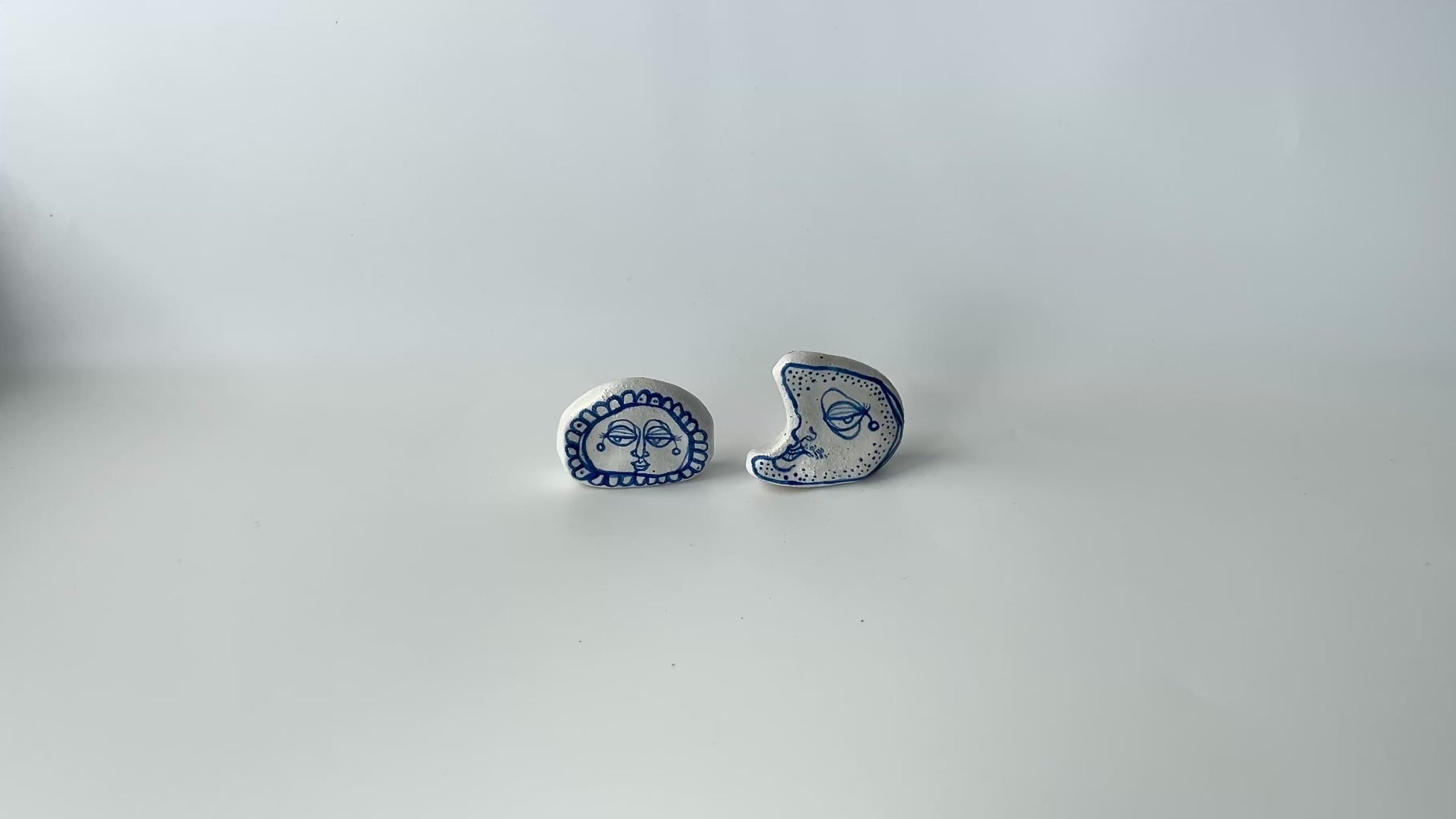 Design: Sun and moon characters, hand-painted with underglazes