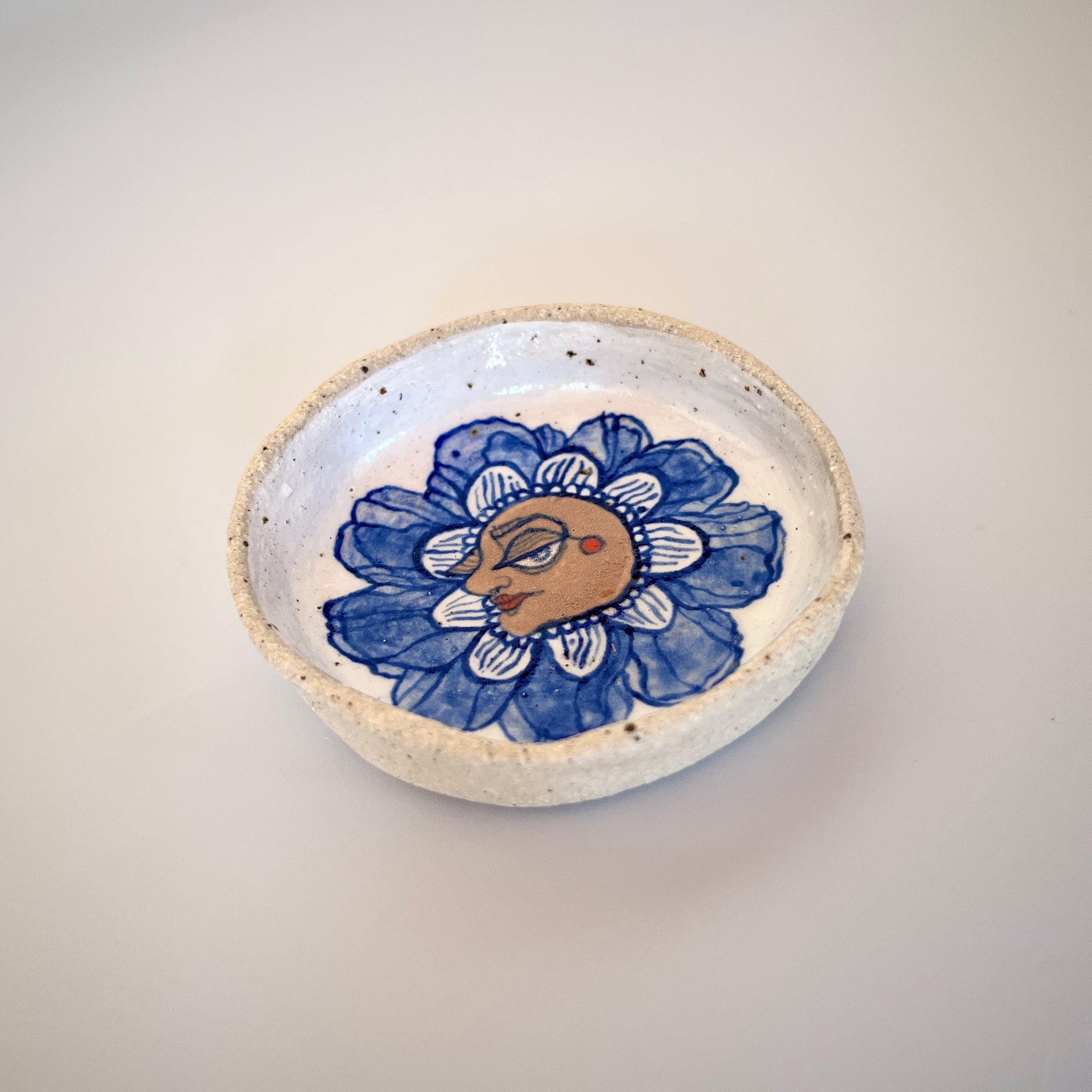 Handcrafted Ceramic Trinket Dish - Flower Person Design (Speckled Stoneware)