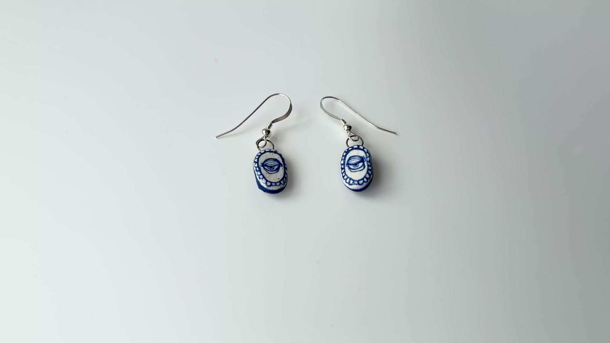Handmade Ceramic Earrings – Eye Design (Sterling Silver, Dangle Earrings)